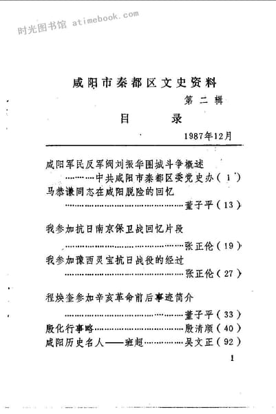 | 网盘路径:/时光图书馆珍藏系列/书籍文件/老图书/《咸阳市秦都市文史资料_第2辑》电子版合集.db | ||