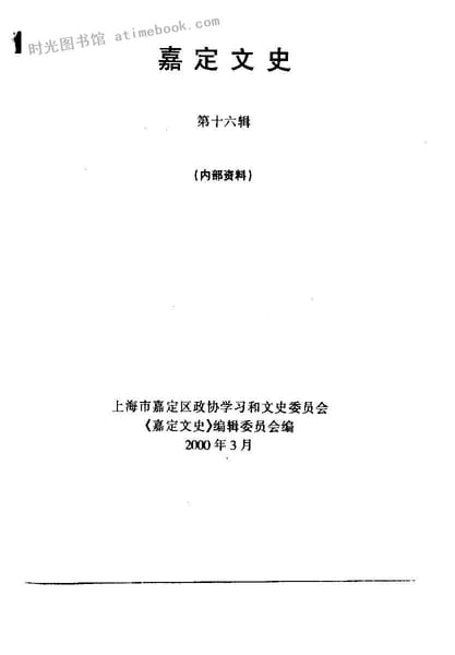 | 网盘路径:/时光图书馆珍藏系列/书籍文件/老图书/《嘉定文史_第16辑》电子版合集.db | ||