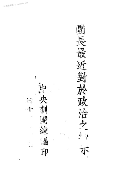 | 网盘路径:/时光图书馆珍藏系列/书籍文件/老图书/《团长最近对于政治之指示》电子版合集.db | ||