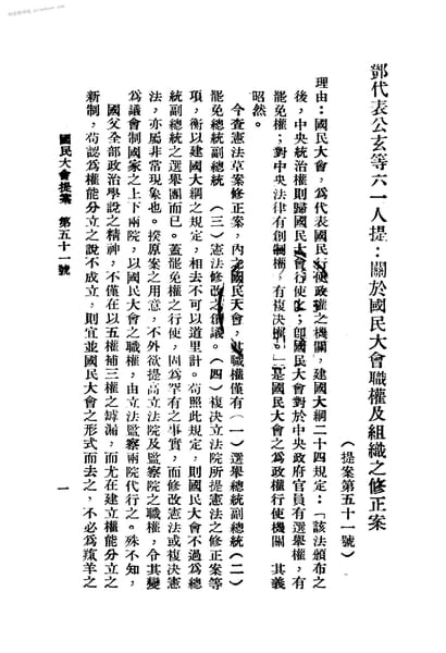2-邓代表公玄等六一人提:关于国民大会职权及组织之修正案