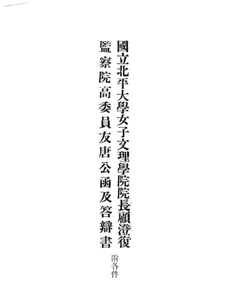 | 网盘路径:/时光图书馆珍藏系列/书籍文件/老图书/《国立北平大学女子文理学院院长顾澄复监察院高委员友唐公函及答辩书(附各件)》电子版合集.db | ||
