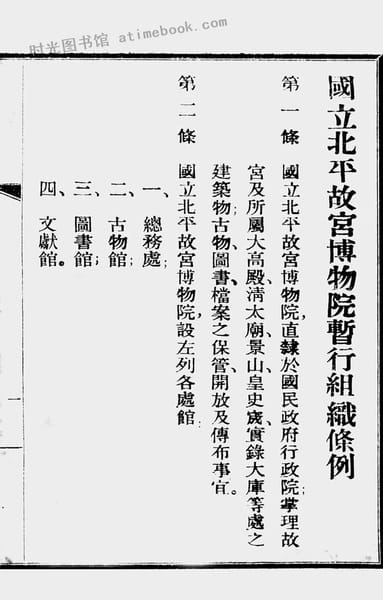 | 网盘路径:/时光图书馆珍藏系列/书籍文件/老图书/《国立北平故宫博物院暂行组织条例》电子版合集.db | ||
