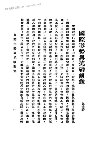 | 网盘路径:/时光图书馆珍藏系列/书籍文件/老图书/《国际形势与抗战前途》电子版合集.db | ||