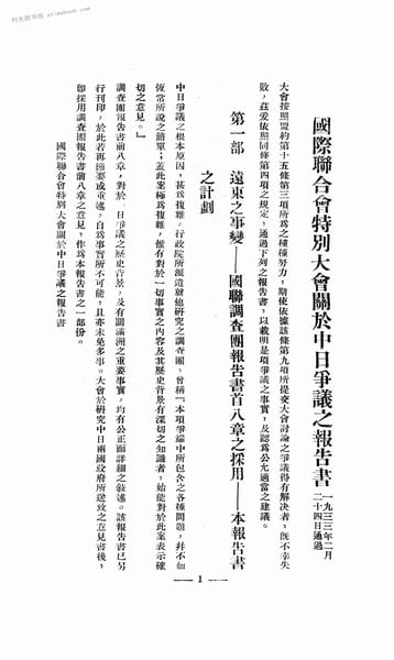 | 网盘路径:/时光图书馆珍藏系列/书籍文件/老图书/《国际联合会特别大会关于中日争议之报告书》电子版合集.db | ||