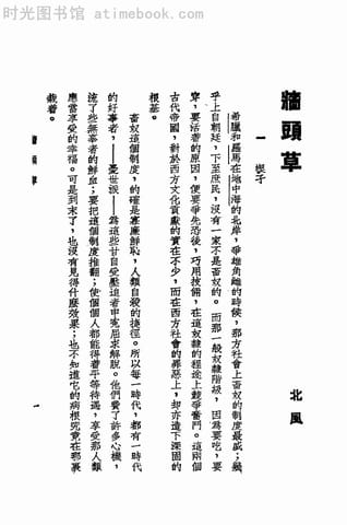 | 网盘路径:/时光图书馆珍藏系列/书籍文件/老图书/《墙头草》电子版合集.db | ||