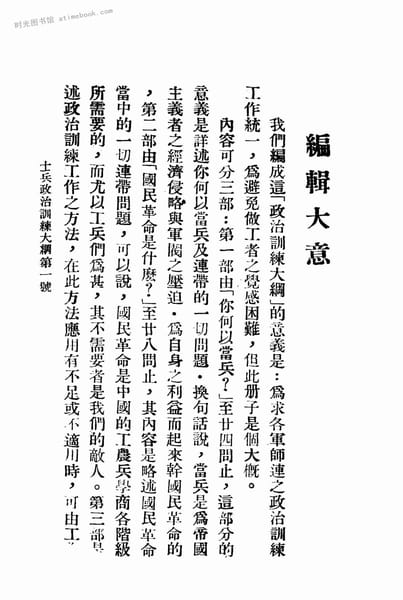 网盘路径:/时光图书馆珍藏系列/书籍文件/老图书/《士兵政治训练大纲(第一二号合刊)》电子版合集.db
