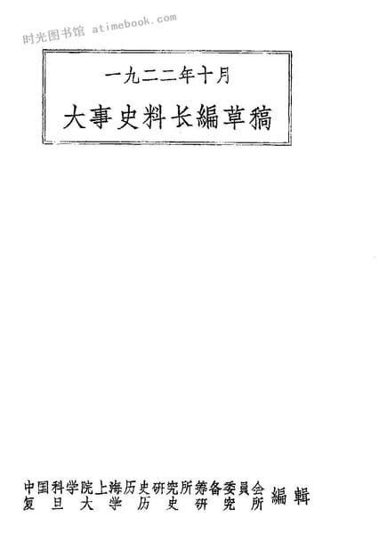 | 网盘路径:/时光图书馆珍藏系列/书籍文件/老图书/《大事史料长编草稿(一九二二年十月)》电子版合集.db | ||