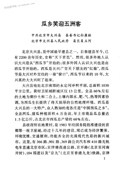 | 网盘路径:/时光图书馆珍藏系列/书籍文件/老图书/《大兴文史_西瓜文化史料专辑》电子版合集.db | ||