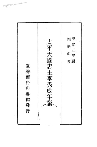 | 网盘路径:/时光图书馆珍藏系列/书籍文件/老图书/《太平天国忠王李秀成年谱》电子版合集.db | ||