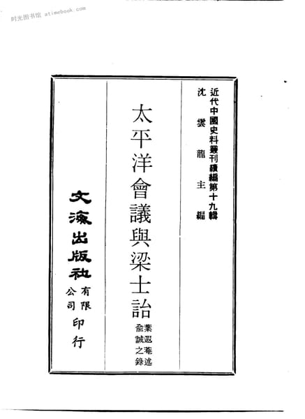 | 网盘路径:/时光图书馆珍藏系列/书籍文件/老图书/《太平洋会议与梁士诒》电子版合集.db | ||