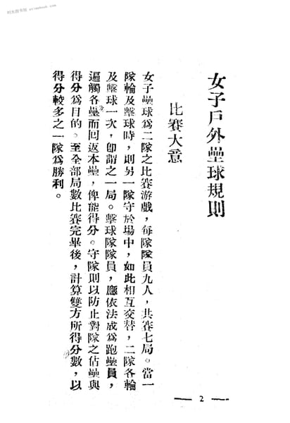 | 网盘路径:/时光图书馆珍藏系列/书籍文件/老图书/《女子户外垒球规则》电子版合集.db | ||