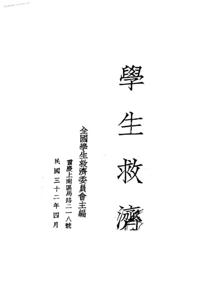 | 网盘路径:/时光图书馆珍藏系列/书籍文件/老图书/《学生救济》电子版合集.db | ||