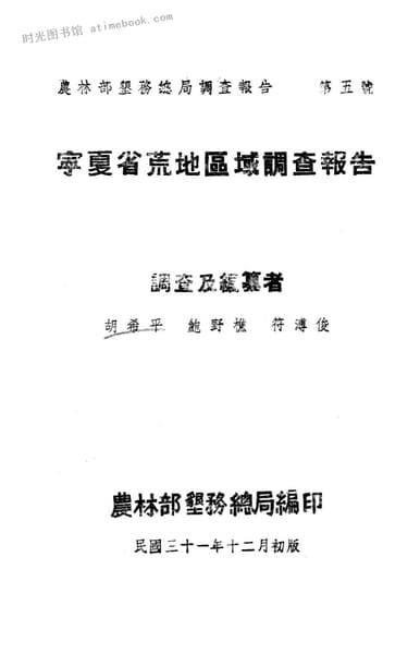 | 网盘路径:/时光图书馆珍藏系列/书籍文件/老图书/《宁夏省荒地区域调查报告》电子版合集.db | ||