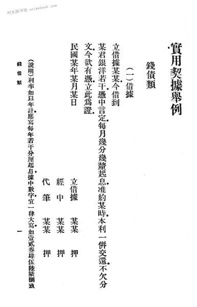 | 网盘路径:/时光图书馆珍藏系列/书籍文件/老图书/《实用契据举例》电子版合集.db | ||