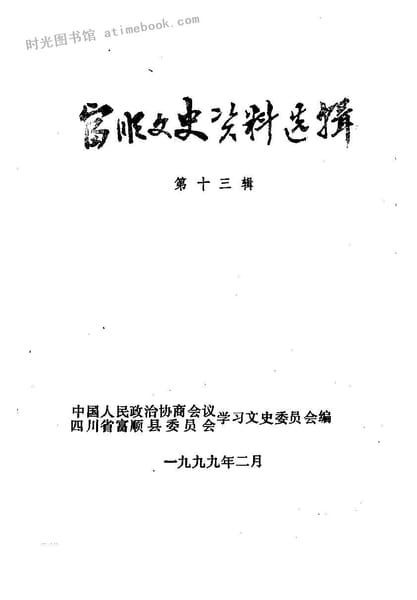| 网盘路径:/时光图书馆珍藏系列/书籍文件/老图书/《富顺文史资料选辑_第13辑》电子版合集.db | ||
