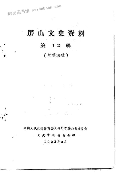 | 网盘路径:/时光图书馆珍藏系列/书籍文件/老图书/《屏山文史资料_总第16辑》电子版合集.db | ||