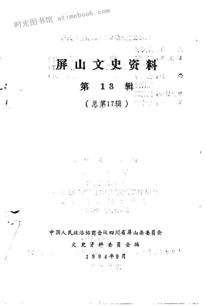 | 网盘路径:/时光图书馆珍藏系列/书籍文件/老图书/《屏山文史资料_第13辑》电子版合集.db | ||
