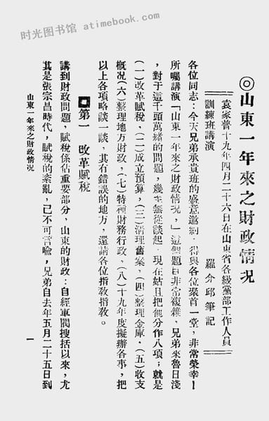 老图书–《山东一年来之财政情况》电子版合集