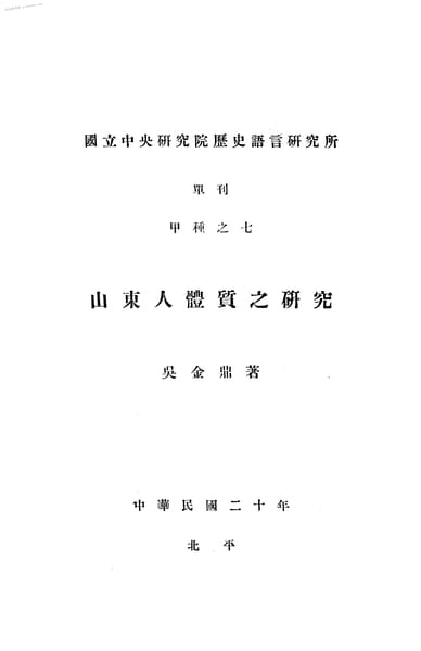 | 网盘路径:/时光图书馆珍藏系列/书籍文件/老图书/《山东人体质之研究》电子版合集.db | ||