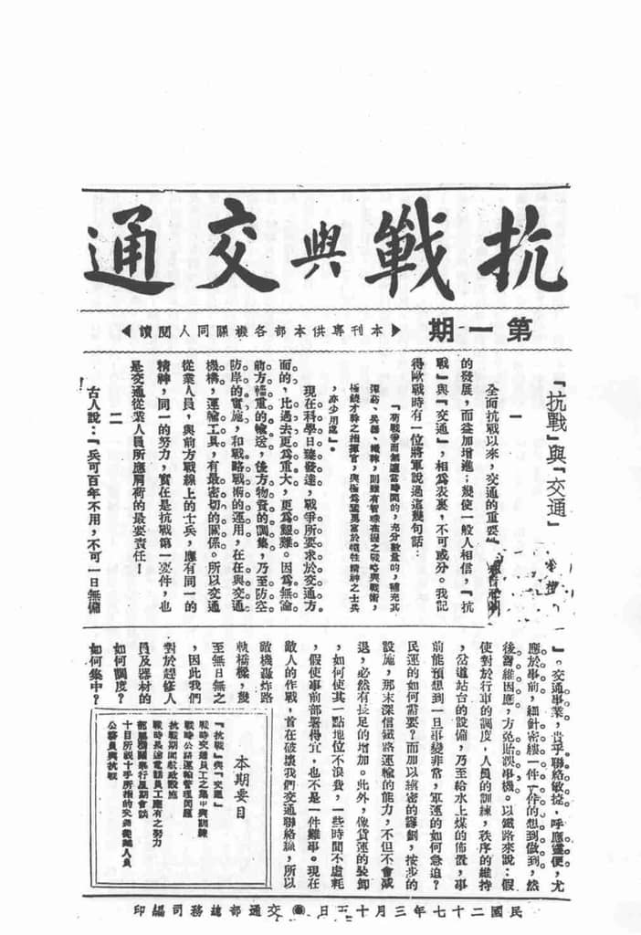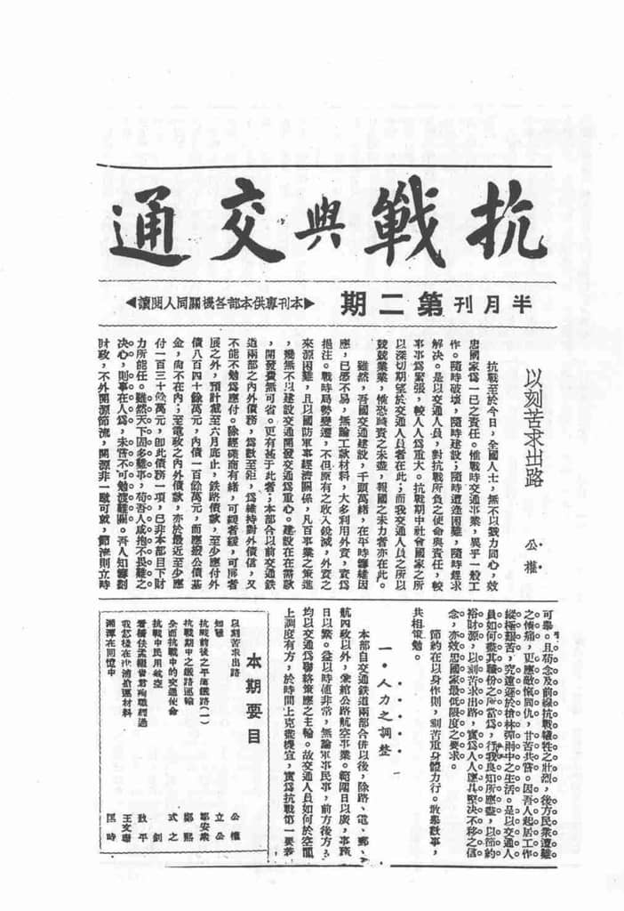 | 网盘路径:/时光图书馆珍藏系列/书籍文件/老杂志、老期刊/民国期刊/四川/《抗战与交通》(重庆)1938-1942年合集.db | ||