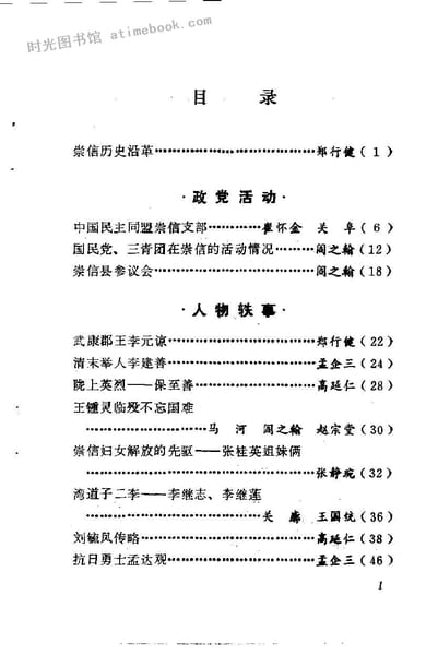 | 网盘路径:/时光图书馆珍藏系列/书籍文件/老图书/《崇信文史_第1辑》电子版合集.db | ||