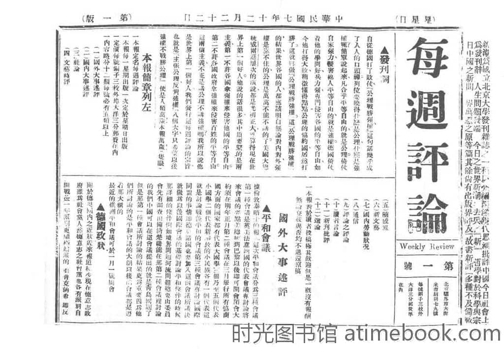 | 网盘路径:/时光图书馆珍藏系列/书籍文件/老杂志、老期刊/民国期刊/北京/《每周评论》(北京)1918-1919年合集.db | ||