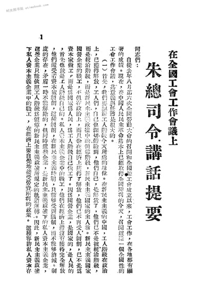 2-一在全国工会工作会议上朱总司令讲话提要