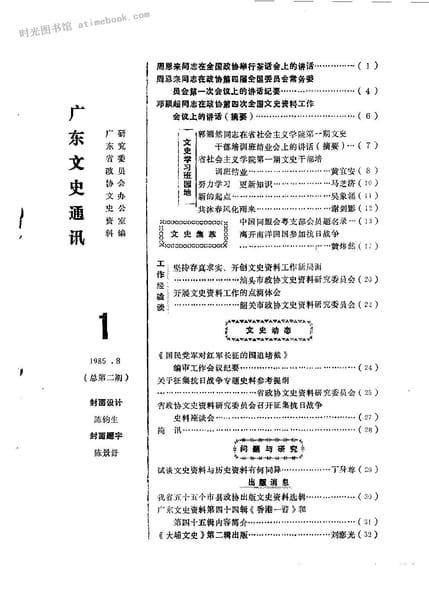 | 网盘路径:/时光图书馆珍藏系列/书籍文件/老图书/《广东文史通讯_总第2期》电子版合集.db | ||