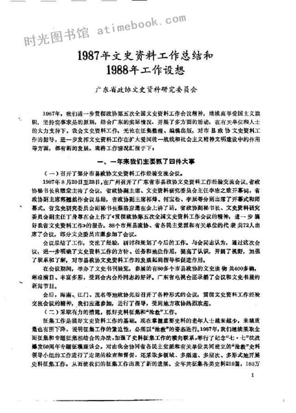 2-1987年文史资料工作总结和1988年工作设想(广东省*文史资料研究委员会)