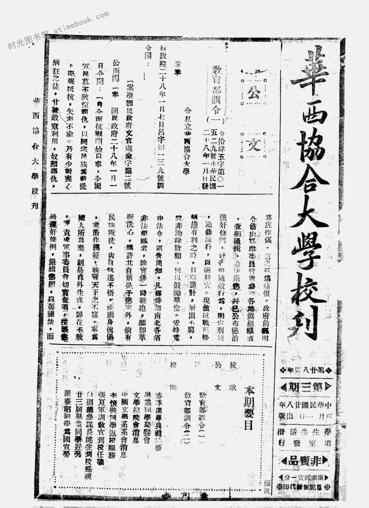 网盘路径:/时光图书馆珍藏系列/书籍文件/老杂志、老期刊/民国期刊/四川/《华西协合大学校刊》(成都)1939-1946年合集.db