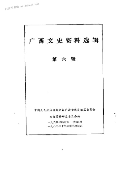 | 网盘路径:/时光图书馆珍藏系列/书籍文件/老图书/《广西文史资料选辑_第6辑》电子版合集.db | ||