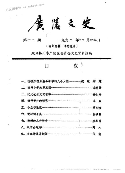 | 网盘路径:/时光图书馆珍藏系列/书籍文件/老图书/《广陵文史_第11期》电子版合集.db | ||