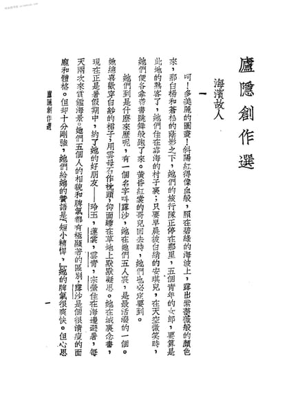网盘路径:/时光图书馆珍藏系列/书籍文件/老图书/《庐隐创作选》电子版合集.db