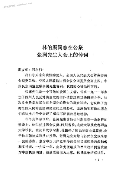 2-林伯渠同志在公祭张澜先生大会上的悼词