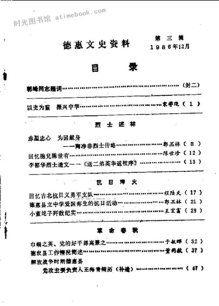 | 网盘路径:/时光图书馆珍藏系列/书籍文件/老图书/《德惠文史资料_第3辑》电子版合集.db | ||