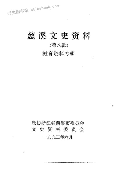 | 网盘路径:/时光图书馆珍藏系列/书籍文件/老图书/《慈溪文史资料_第8辑_教育资料专辑》电子版合集.db | ||