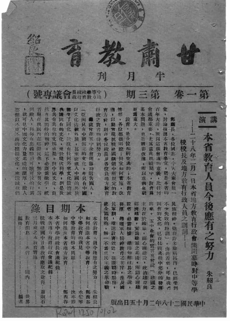 名称:《甘肃教育半月刊》(兰州)1939-1945年合集