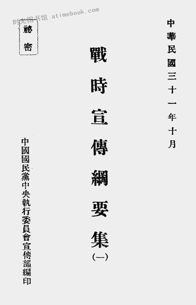 | 网盘路径:/时光图书馆珍藏系列/书籍文件/老图书/《战时宣传纲要集(一)》电子版合集.db | ||