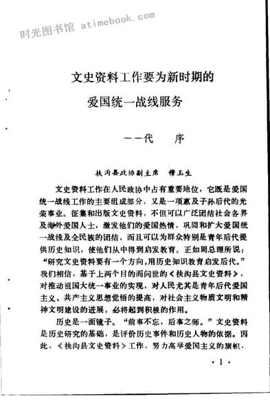 | 网盘路径:/时光图书馆珍藏系列/书籍文件/老图书/《扶沟县文史资料_第1辑》电子版合集.db | ||