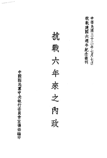 文件下载 | 名称:《抗战六年来之内政》电子版合集 | |