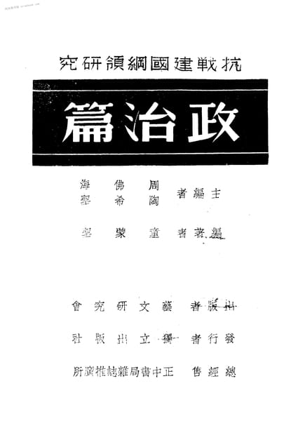 | 网盘路径:/时光图书馆珍藏系列/书籍文件/老图书/《抗战建国纲领研究政治篇》电子版合集.db | ||