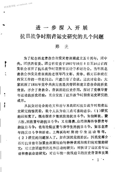 | 网盘路径:/时光图书馆珍藏系列/书籍文件/老图书/《抗日战争时期青年运动专题论文集》电子版合集.db | ||