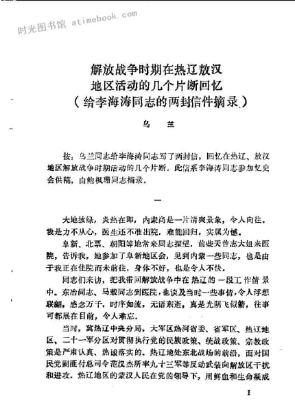 2-一、解放战争时期在热辽敖汉埯区活动的几个片断国忆(给李海涛同志的两封信件摘录)乌兰(1)