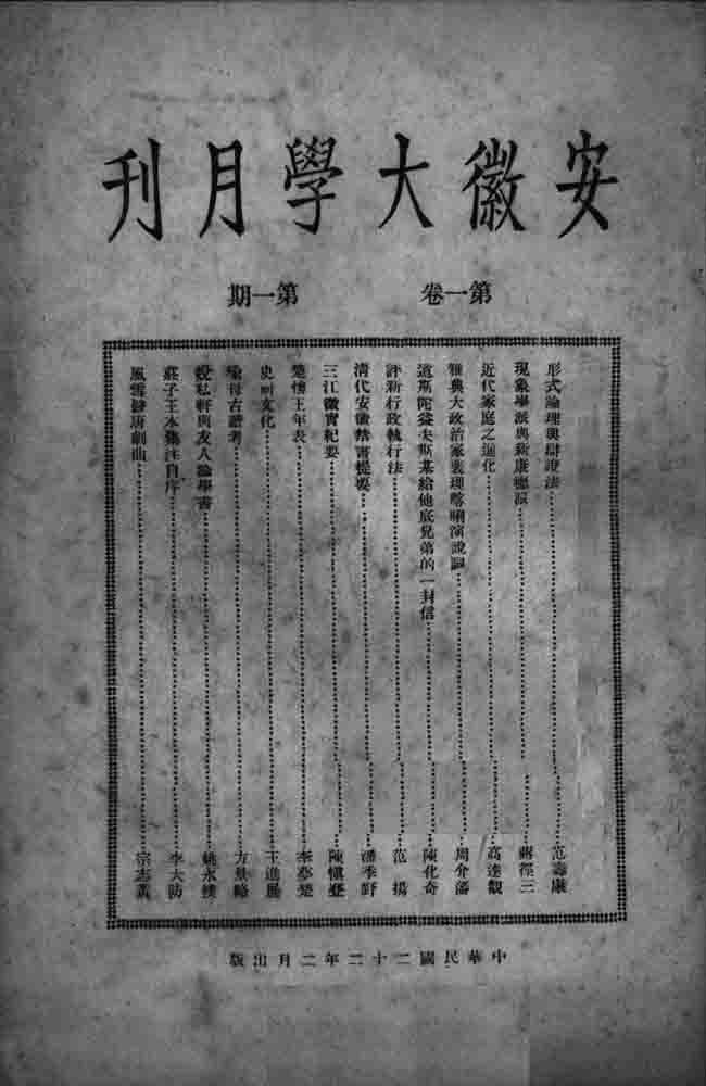 | 网盘路径:/时光图书馆珍藏系列/书籍文件/老杂志、老期刊/民国期刊/安徽/《安徽大学月刊》(安庆)1933-1935年合集.db | ||