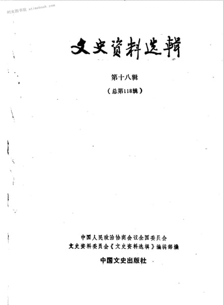 | 网盘路径:/时光图书馆珍藏系列/书籍文件/老图书/《文史资料选辑_第18辑_总118辑》电子版合集.db | ||