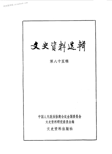 | 网盘路径:/时光图书馆珍藏系列/书籍文件/老图书/《文史资料选辑_第85辑》电子版合集.db | ||