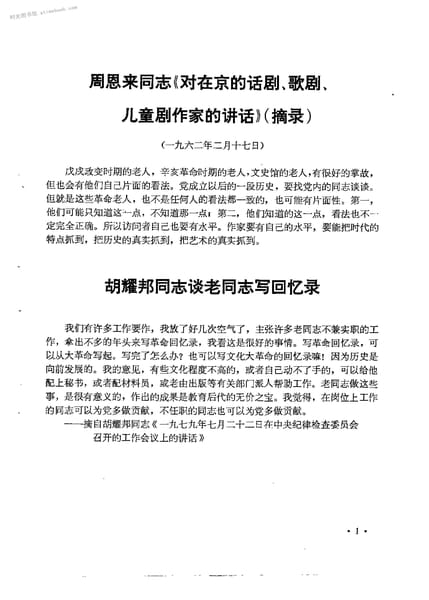 2-周恩来同志《对在京的话剧、歌剧、儿童剧作家的讲话》(摘录)的一次讲话(摘录)