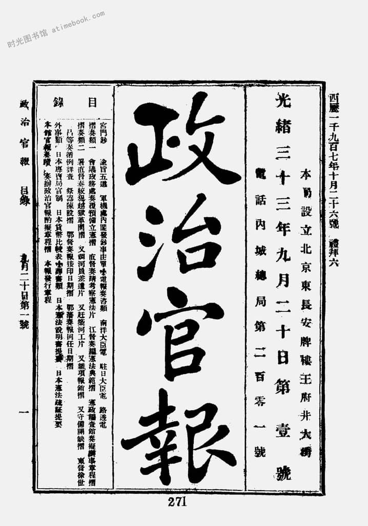 老报纸–《政治官报》(北京)1907-1908年合集 电子版