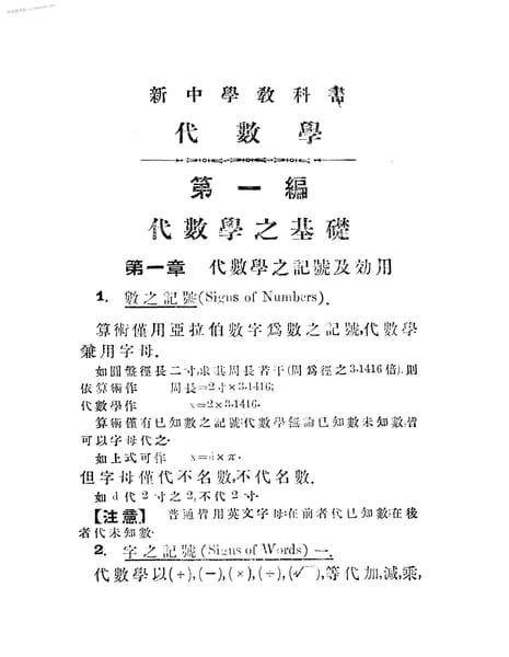 老图书–《新中学代数学教科书》电子版合集