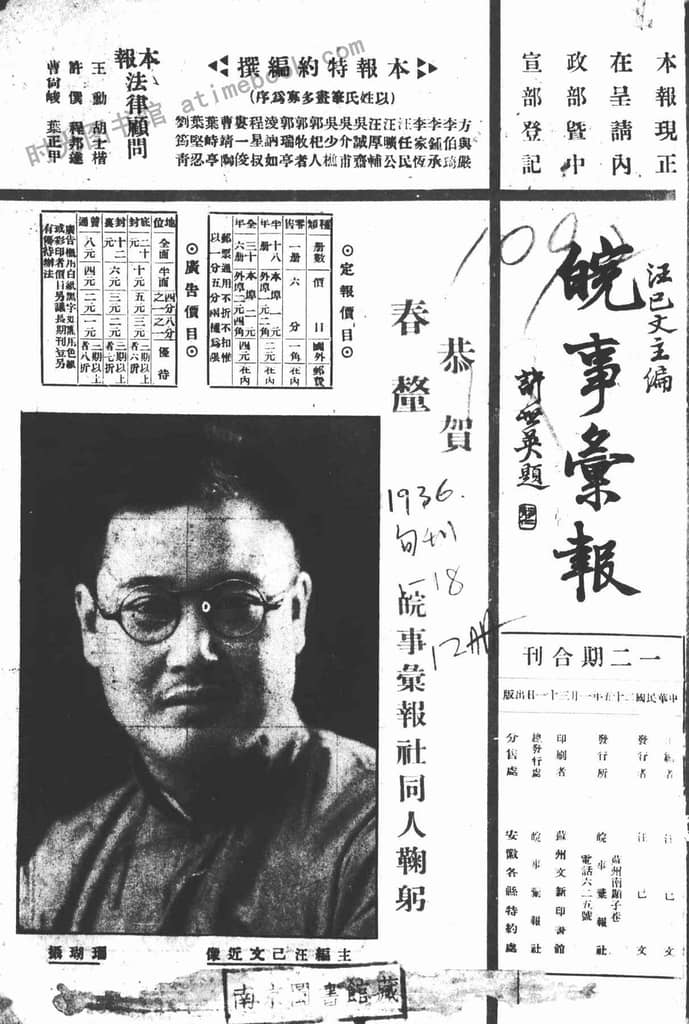 | 网盘路径:/时光图书馆珍藏系列/书籍文件/老报纸/江苏/《皖事汇报》(苏州)1936-1936年合集.db | ||